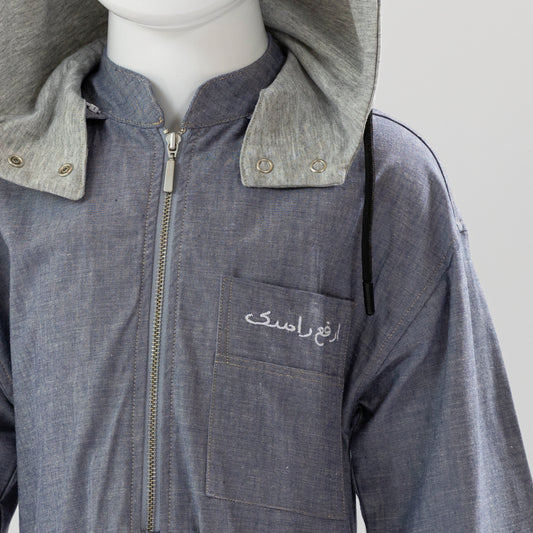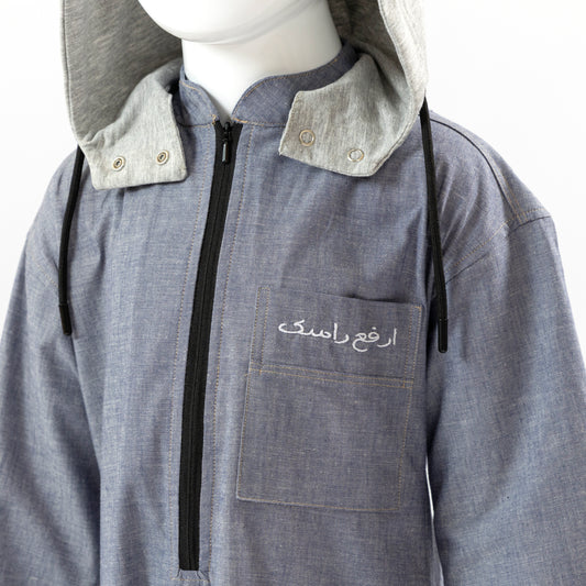 ثوب أولاد "ارفع راسك" مع هودي وسحّاب رمادي
