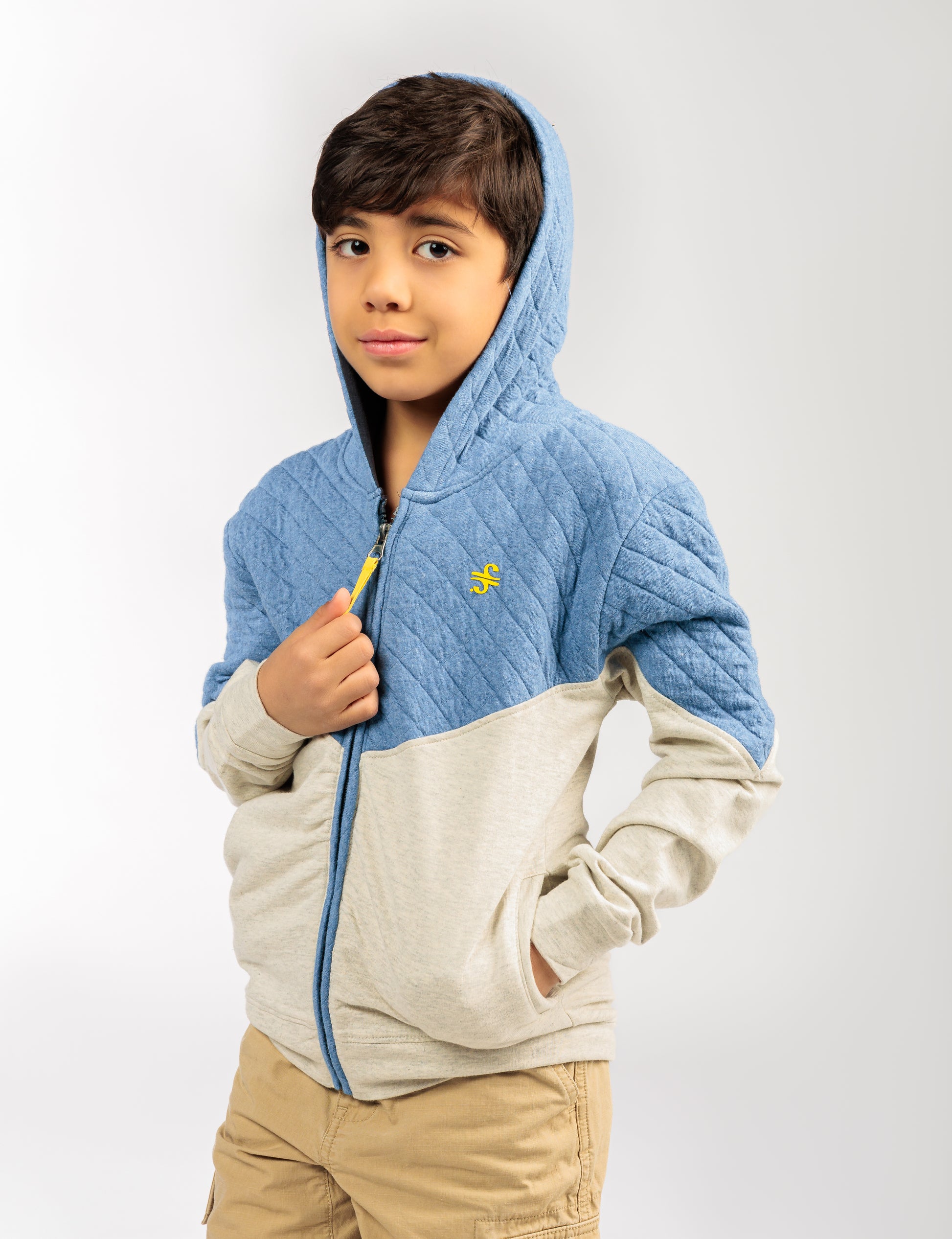 جاكيت بطاقية "هودي" مصنوع من القطن العضوي المنسوج يدمج بين اللونين الأزرق والرمادي، ويتزين بكتابة الجملة الشبابية الرائجة في الخليج "أطيح واقف" بخطٍ أسود عريض على الظهر لإلهام كل من يرتديها بالثقة والاستمرارية مهما صعب الطريق أو طال! يمكن تنسيقها مع بنطلون قطني أو جينز اختياري لإطلالةٍ جذابة! متوفر بمقاسات مختلفة.