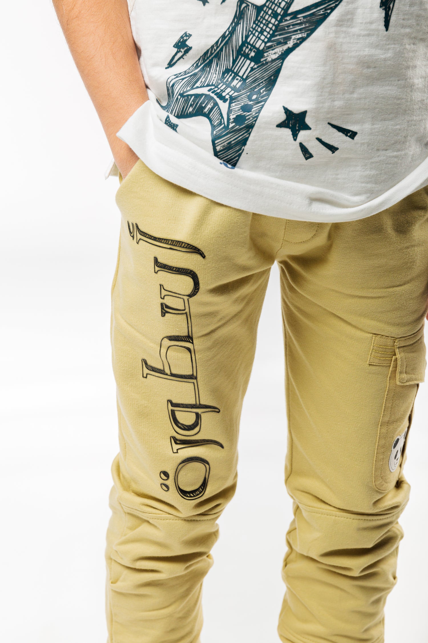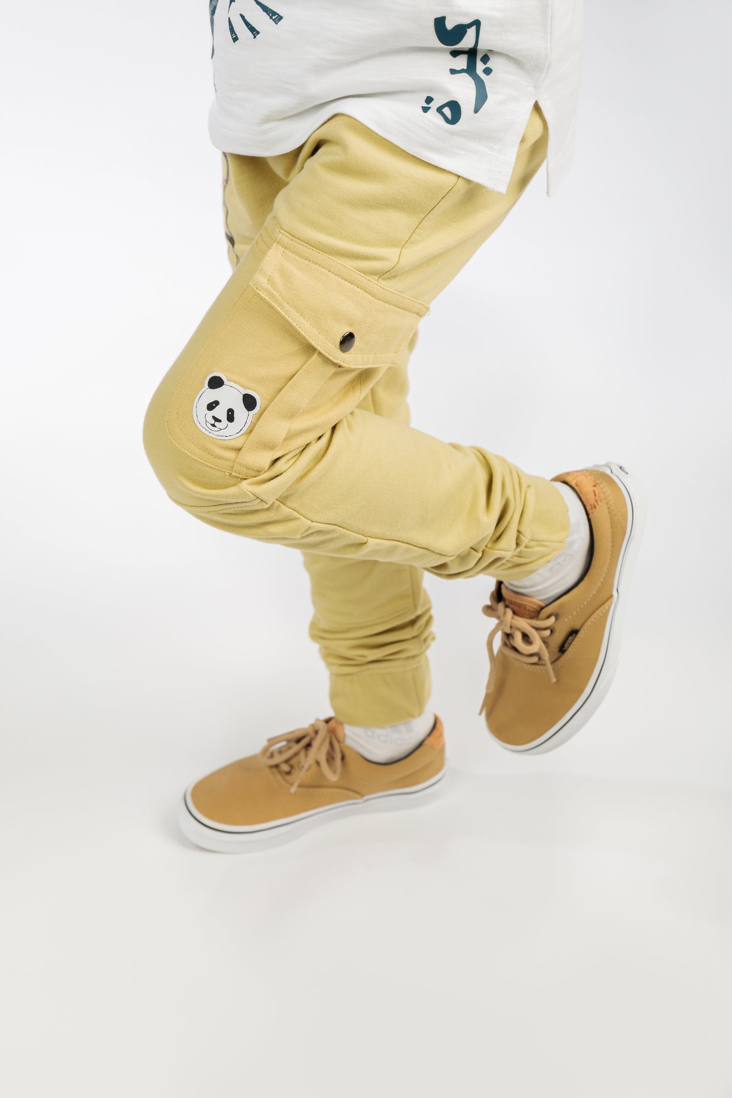 بنطلون رياضي بلونِ الخردل بخصر مطاطي وجيوبٍ متعددة عملية وأخرى أكثرَ مرحاً وقابلة للإغلاق! يكتمل تصميم البنطلون بالإضافة لصناعته من القطن العضوي المستدام (بنسبة 100%)؛ بطباعة بارزة لكلمة أسطورة على الساق باللون الأسود لتظهر شخصية الشاب المغامر الخطير. يمكن تنسيق هذا البنطلون مع قطع أخرى من نفس المجموعة لإطلالةٍ واثقة.