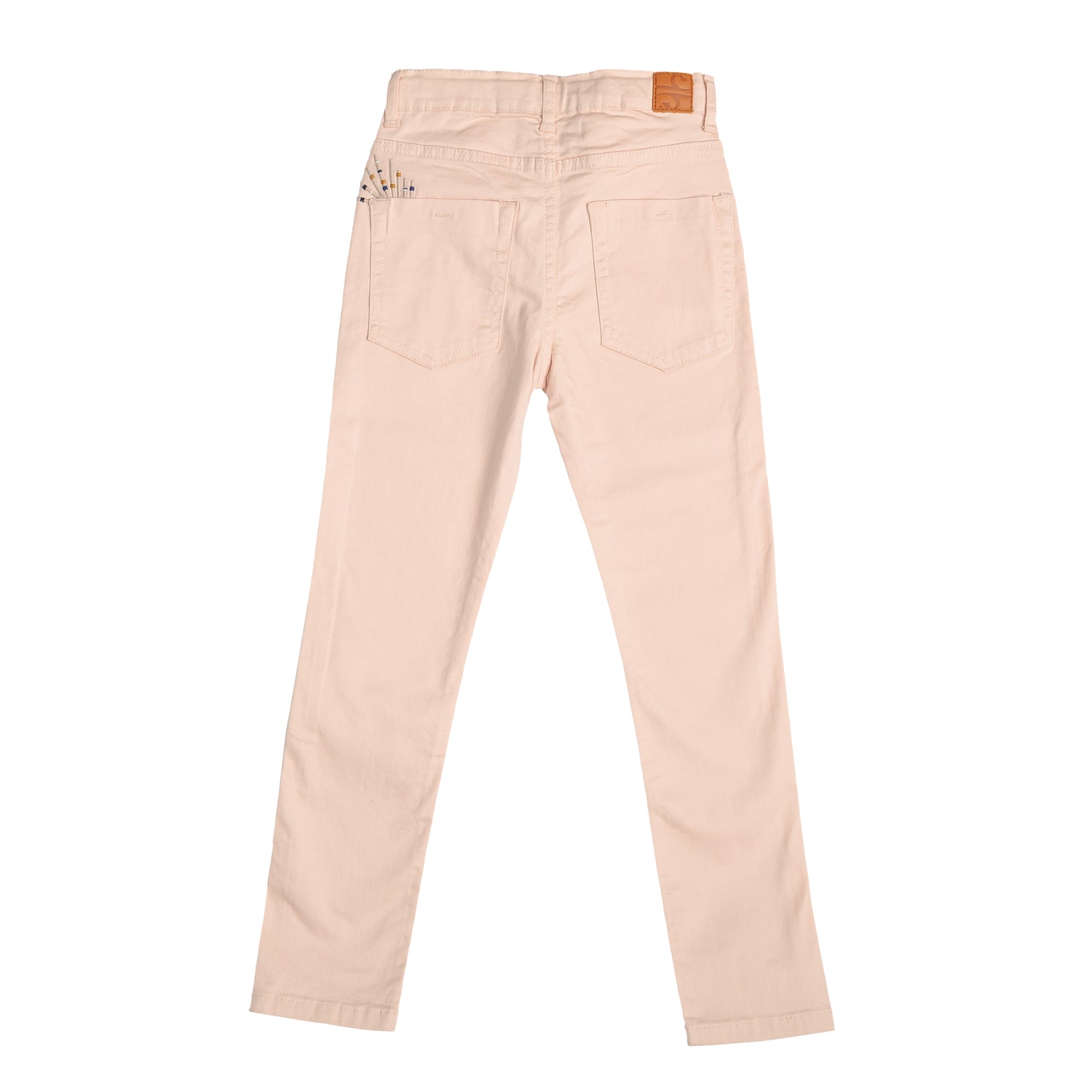 بنطلون وردي مصنوع من القطن المصري والليكرا، طويلٌ بقصة ضيقة وجيوبٍ عملية متعددة الاستخدامات مزينة بتطريز بسيط عند الجيب بألوانٍ زاهية. يمكن ارتداؤه مع بلوزة "تك تك"، وكذلك جاكيت "الهوا بدّو خيمة". متوفر بمقاسات مختلفة لإطلالة ملفتةً في الربيع!
