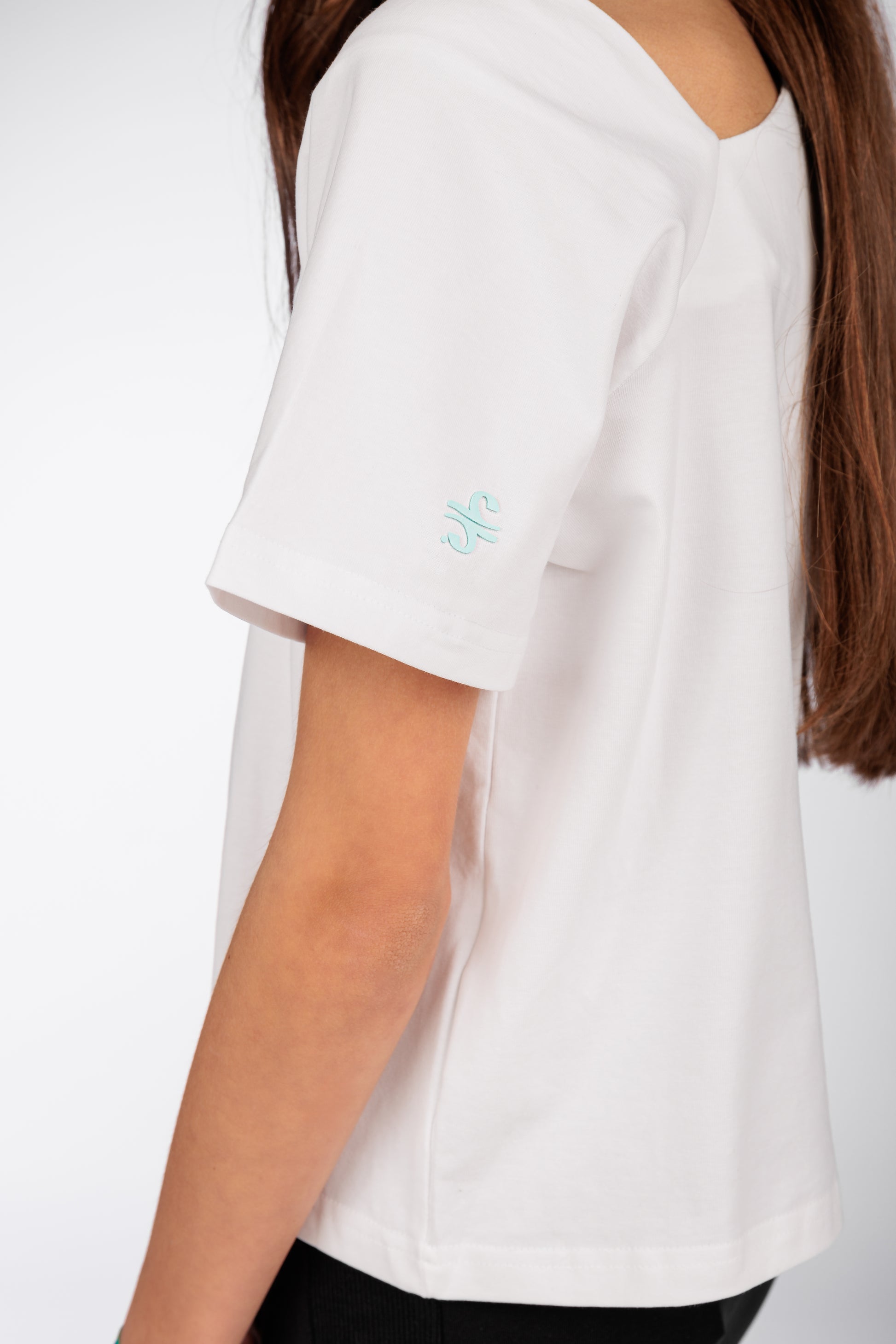 بلوزة باللون الأبيض الأنيق، تتميز بوجود طبعة ملونة لأحرف كلمة "تهبل" موزعة بشكل ملفت، مع قصة (V) التي تبدو كجناح فراشة حول العنق، لإعطاء شعور الفراشة الراقصة بين الزهور. صُنعت هذه القطعة من القطن العضوي لشعورٍ من الراحة لا يوصف! يمكن تنسيقها مع البنطلون المطاط ليقنز "تهبل" من نفس المجموعة، أو مع اي قطعة اختيارية! متوفرة بمقاسات مختلفة.