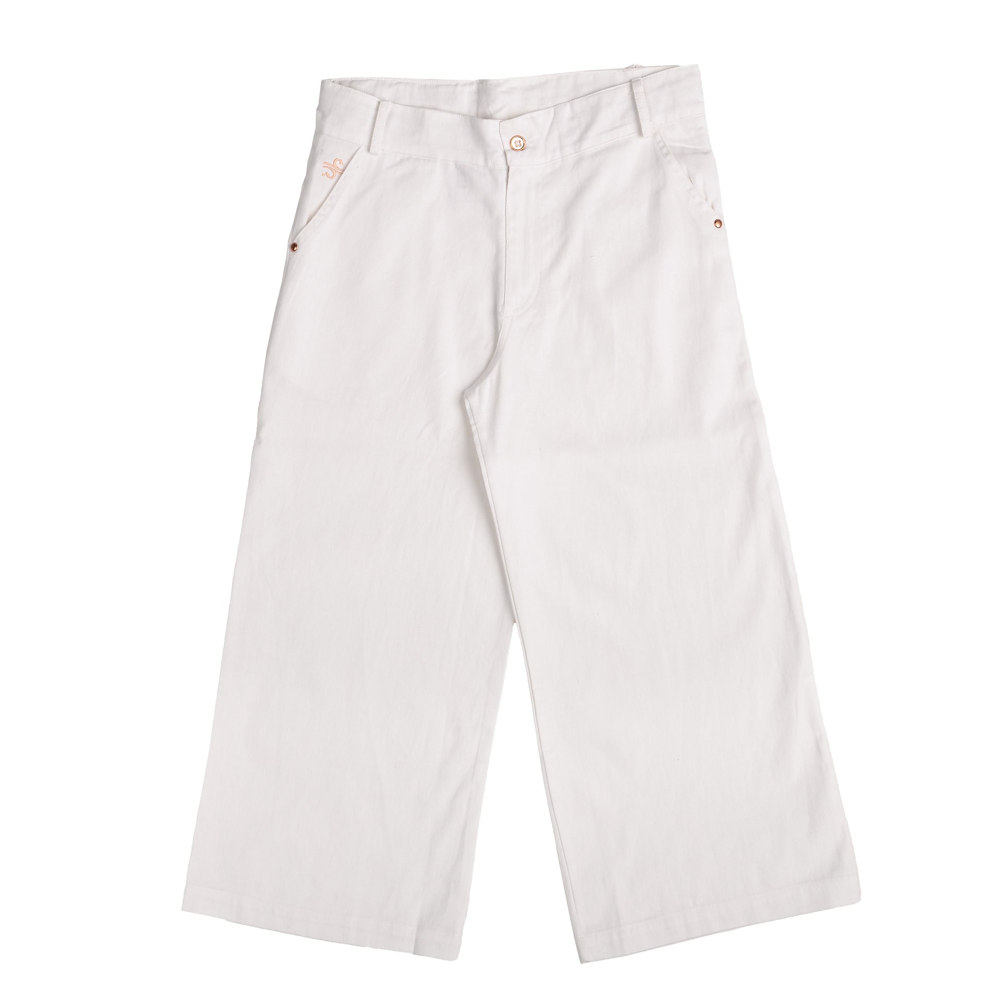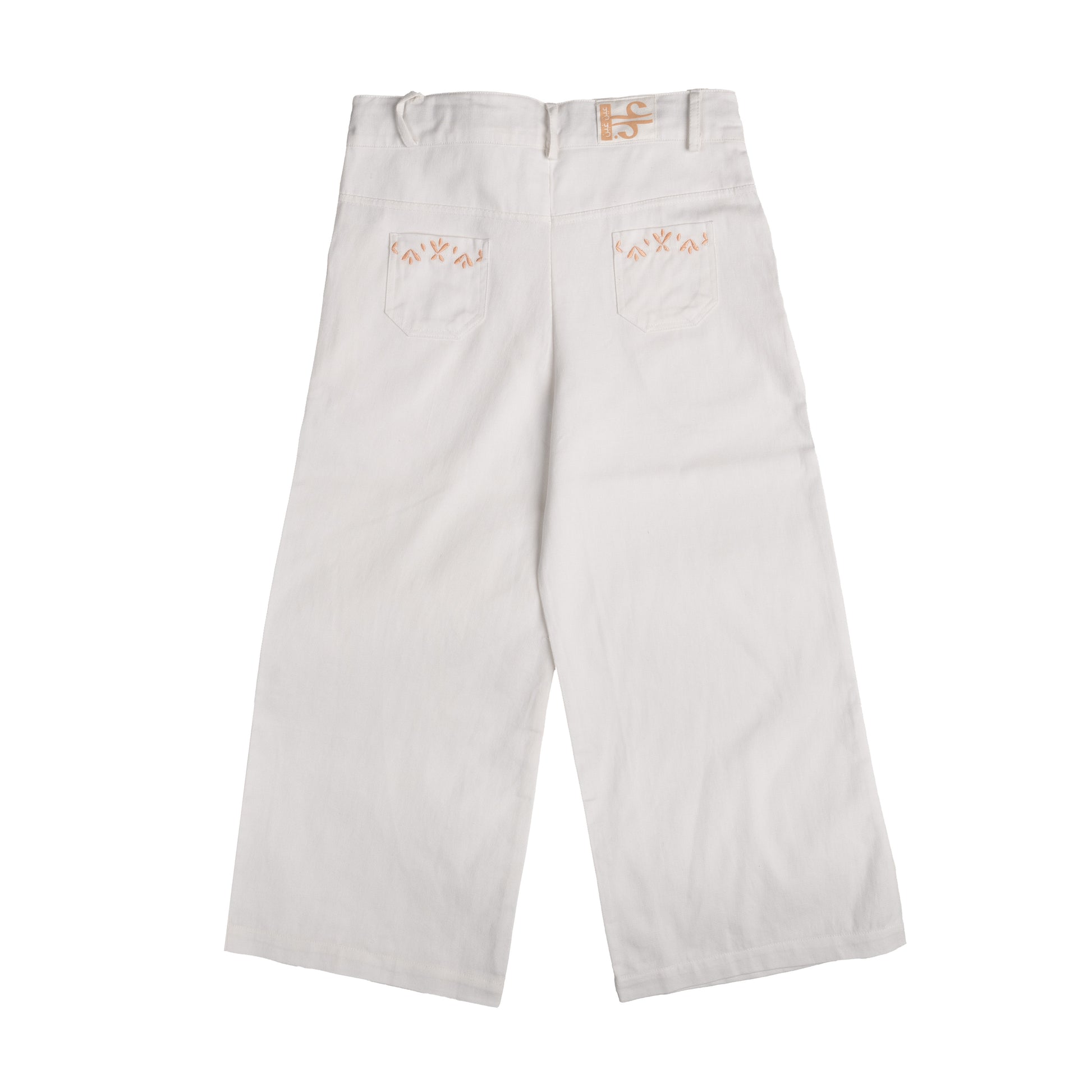 بنطلون أبيض عصريّ مصنوعٌ من القطن العضوي المستدام! تظهر جاذبيته بأرجل واسعة وسحابٍ وزر للإغلاق. يضم البنطلون 4 جيوب كلاسيكية وحلقات متينة لإحكام الحزام. يظهر البنطلون بلونه الأبيض اللافت بتجانس مع تفاصيل صغيرة مطرزة باللون الوردي. يمكن تنسيقه مع بلوزة "الغزالة رايقة" لإطلالة لا مثيل لها!
