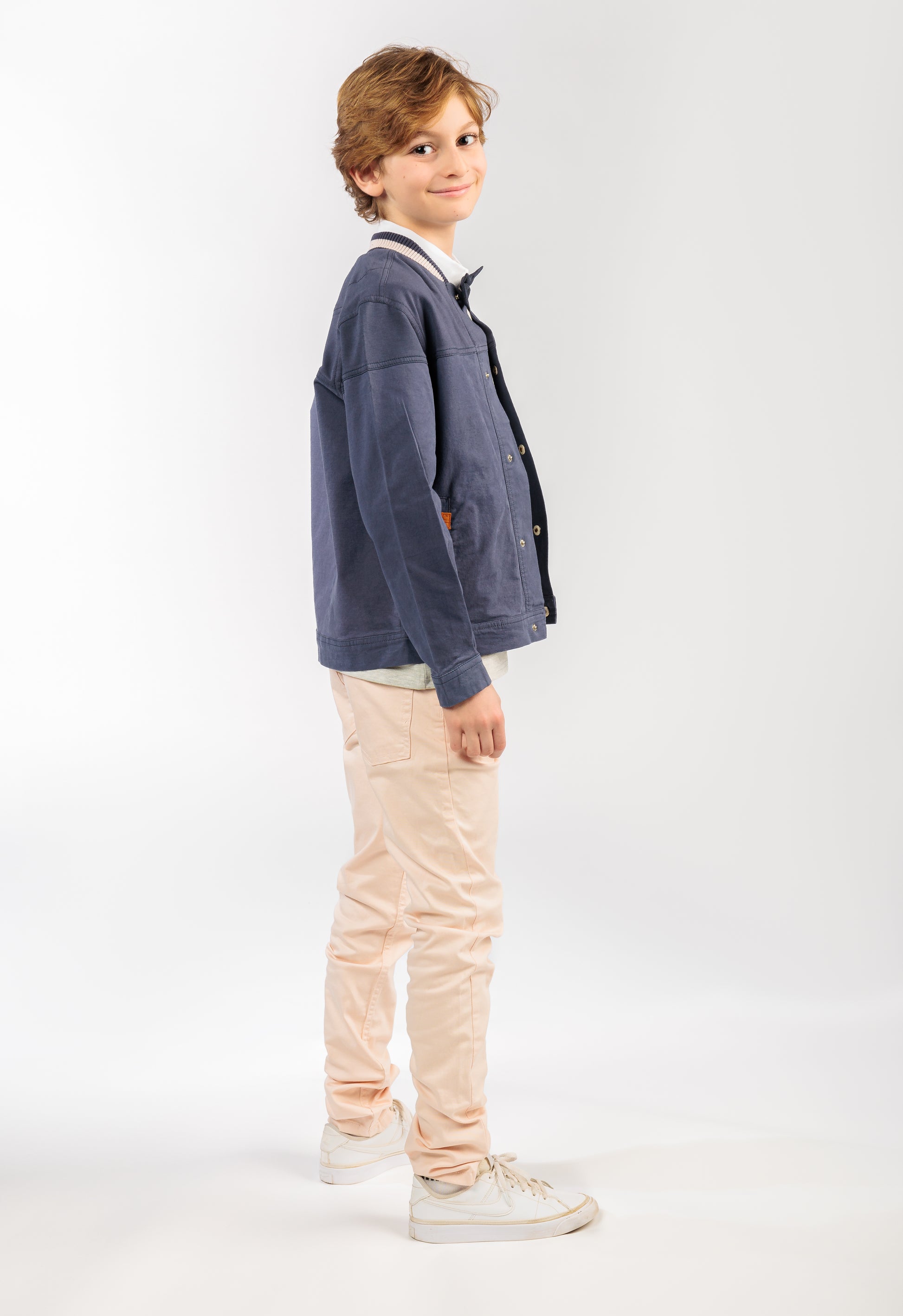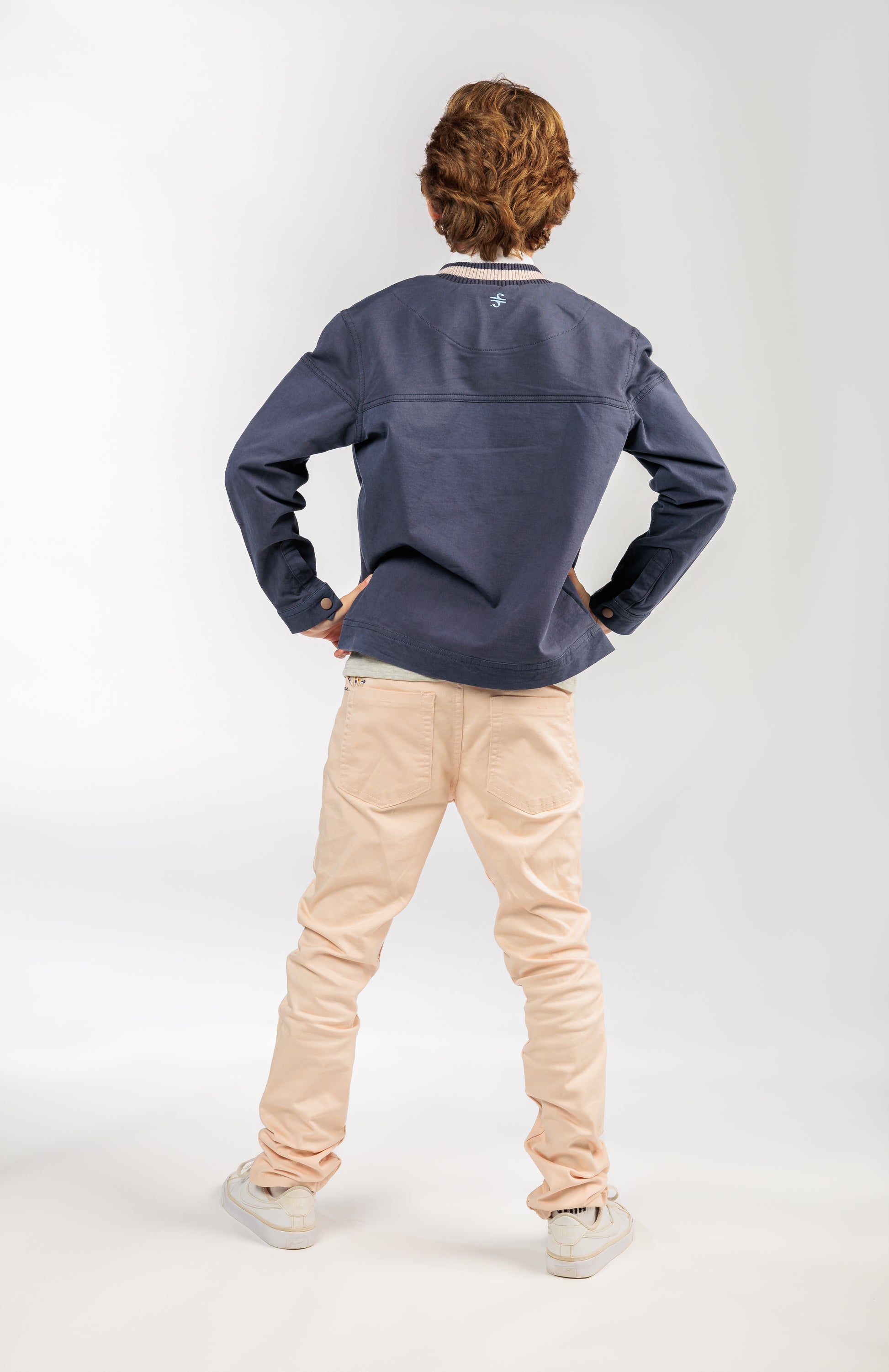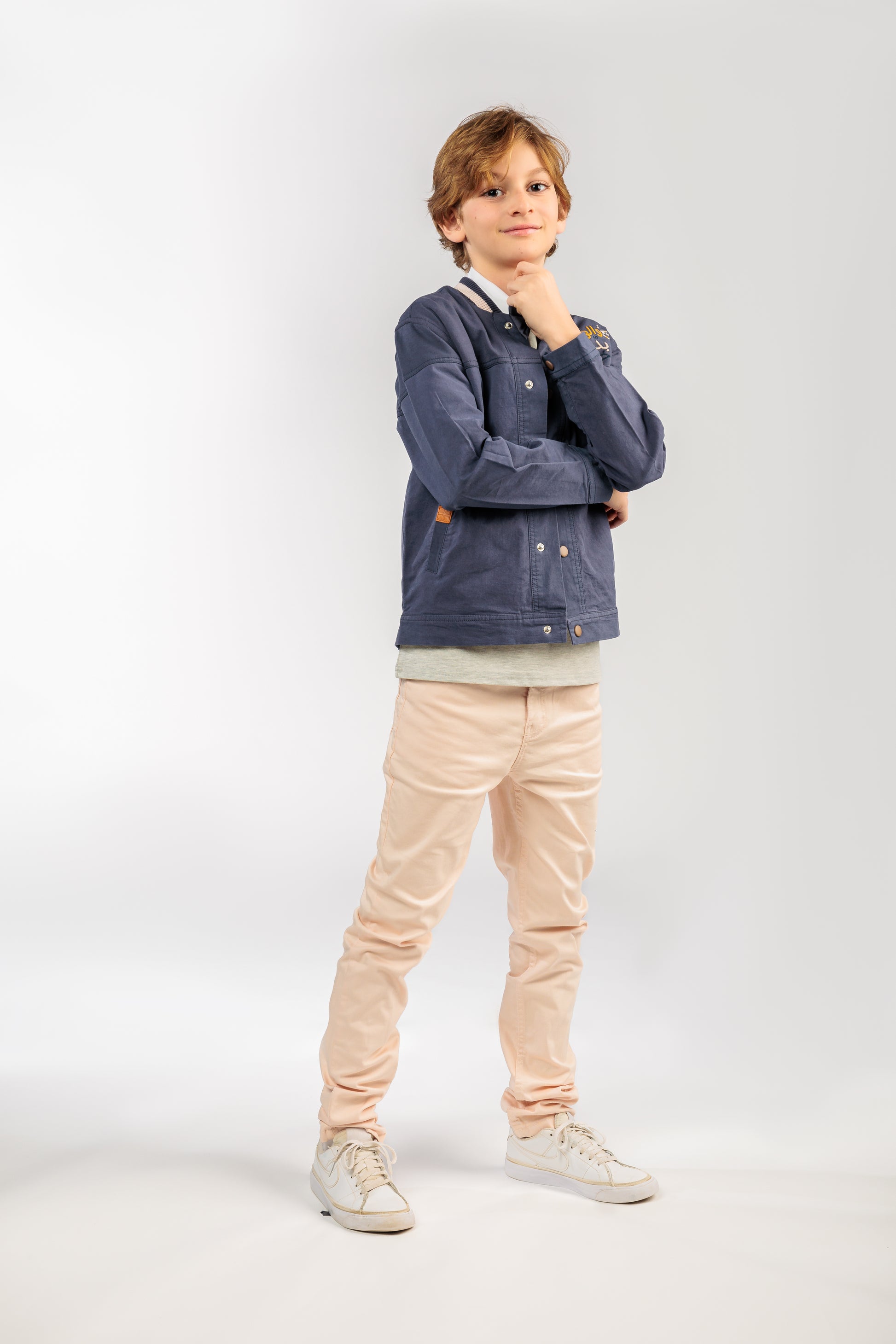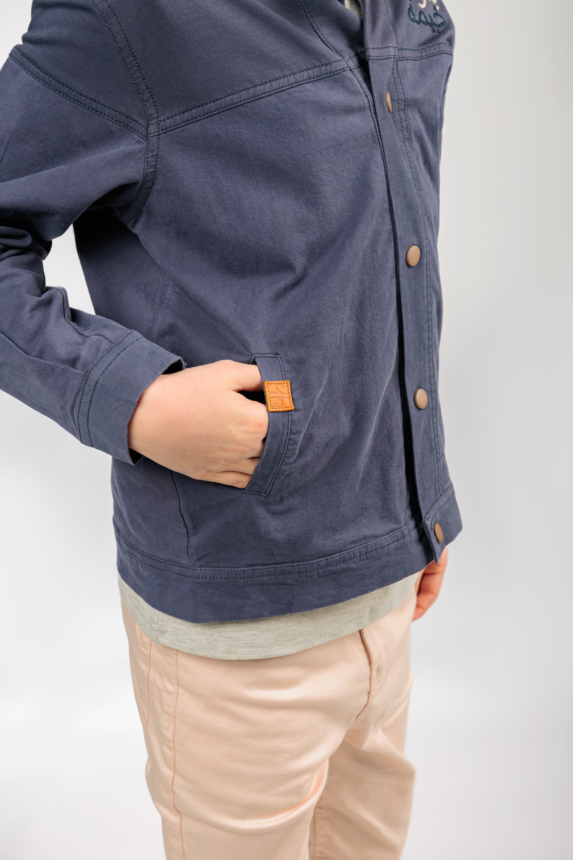 جاكيت أزرق غامق يعكس الجاذبية والهدوء، يعلوه تطريزٌ من الجنب ليخطف الأنظار ويثير الفضول، مع ياقةٍ مخططة عصرية لتكتمل الإطلالة شبه الرسمية، مصنوع من القطن المصري المزدوج. يمكن تنسيقه مع مجموعة تك تك المميزة! متوفر بمقاساتٍ عدة.