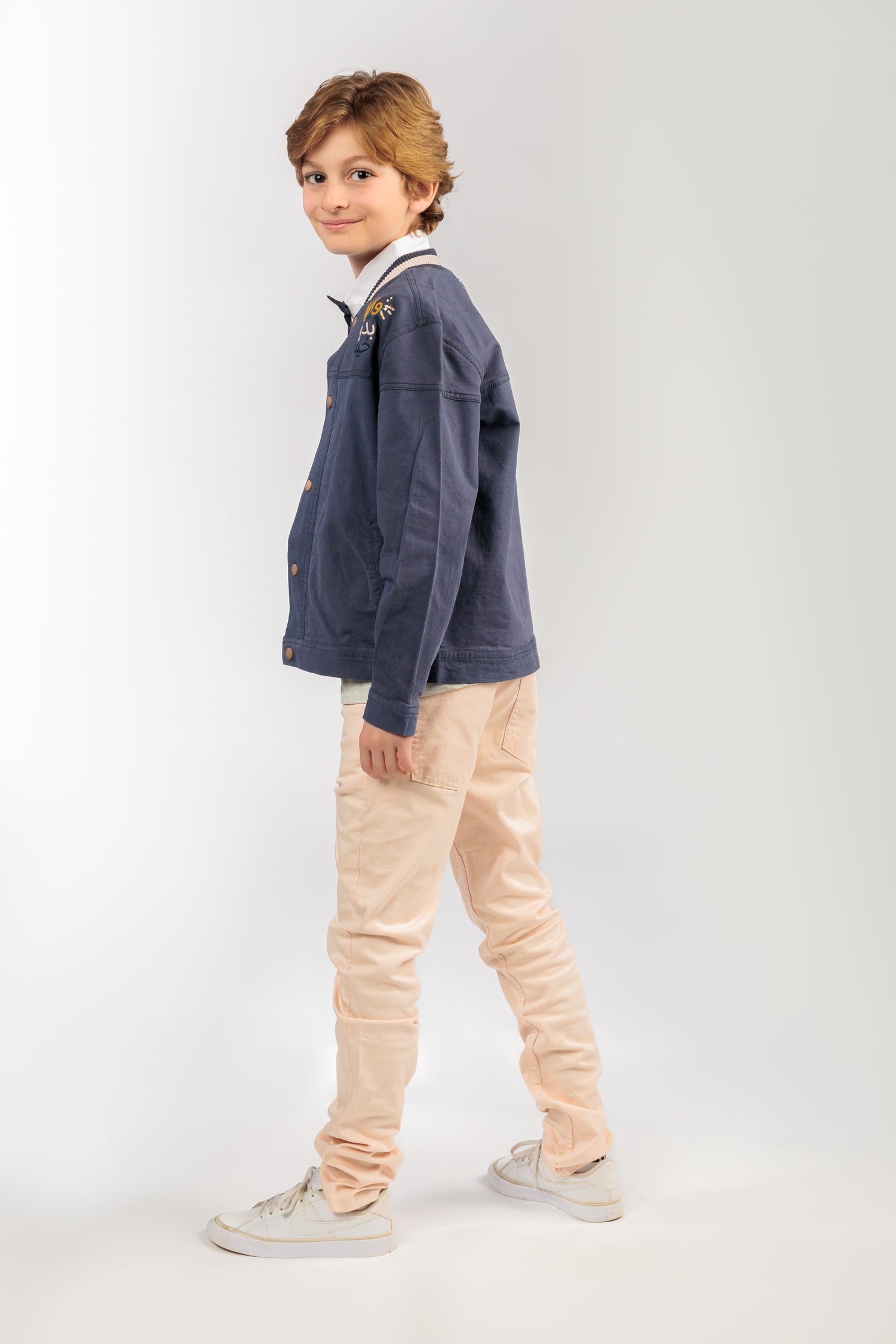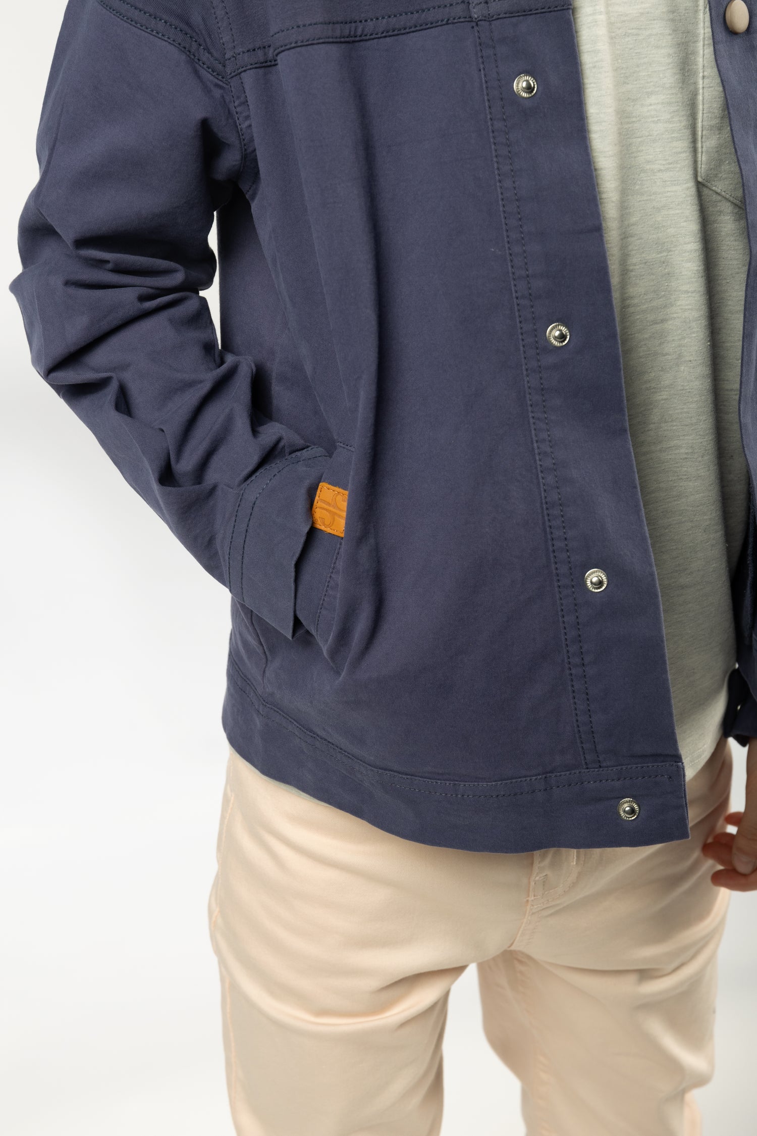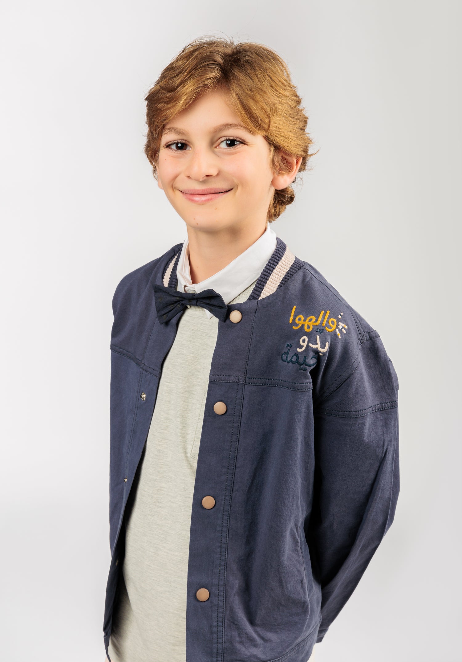 جاكيت أزرق غامق يعكس الجاذبية والهدوء، يعلوه تطريزٌ  من الجنب لكلمات "الهوا بدو خيمة" من أغنية فيروز ليخطف الأنظار ويثير الفضول، مع ياقةٍ مخططة عصرية لتكتمل الإطلالة شبه الرسمية، مصنوع من القطن المصري المزدوج. يمكن تنسيقه مع مجموعة تك تك المميزة! متوفر بمقاساتٍ عدة.