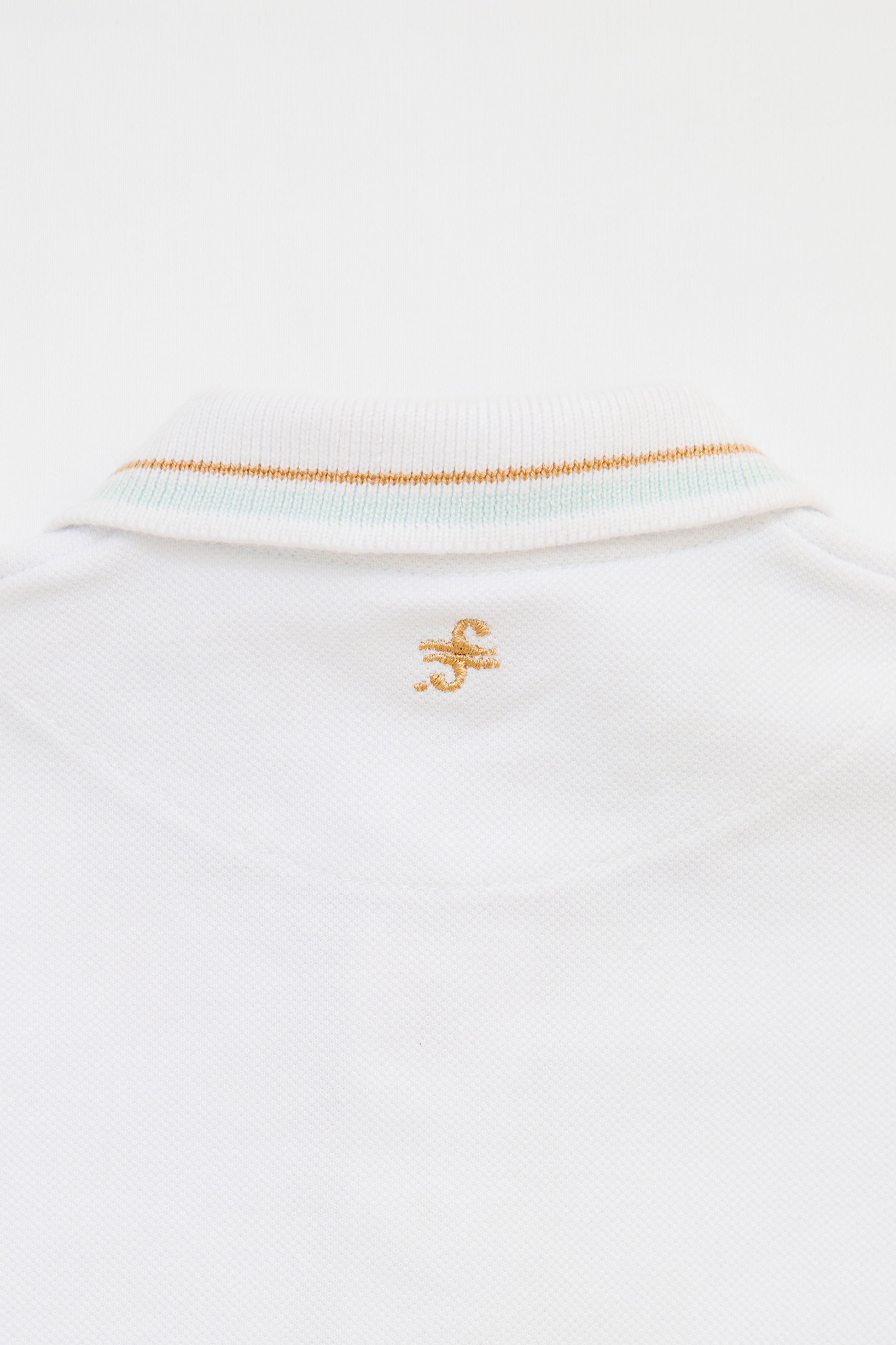 بلوزة بولو بيضاء ظريفة باللون الفستقي! مصنوعة بعناية من القطن العضوي 100% لراحة لا مثيل لها طوال اليوم.