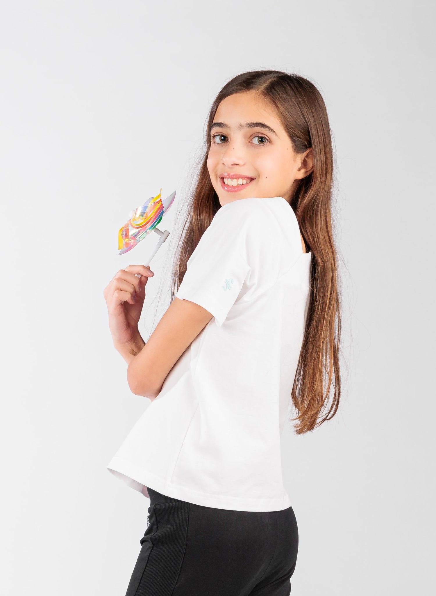 Organic Cotton top with asymmetrical v-neck is adorned with a black print & embroidered with Arabic characters pointing to the Saudi term 'Tahabbel' to give the little lady a butterfly-look. Pair with Tahabbel Leggings for a super cool look