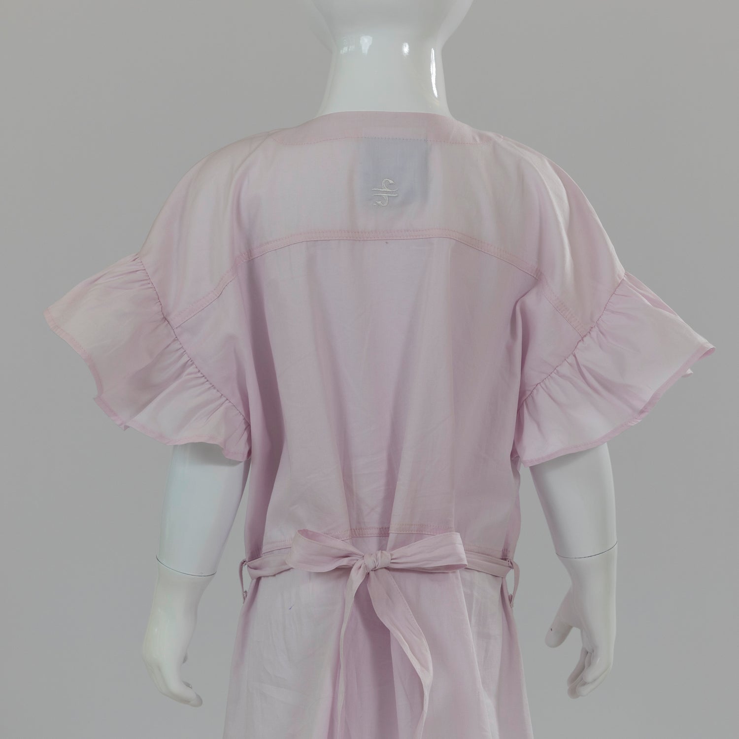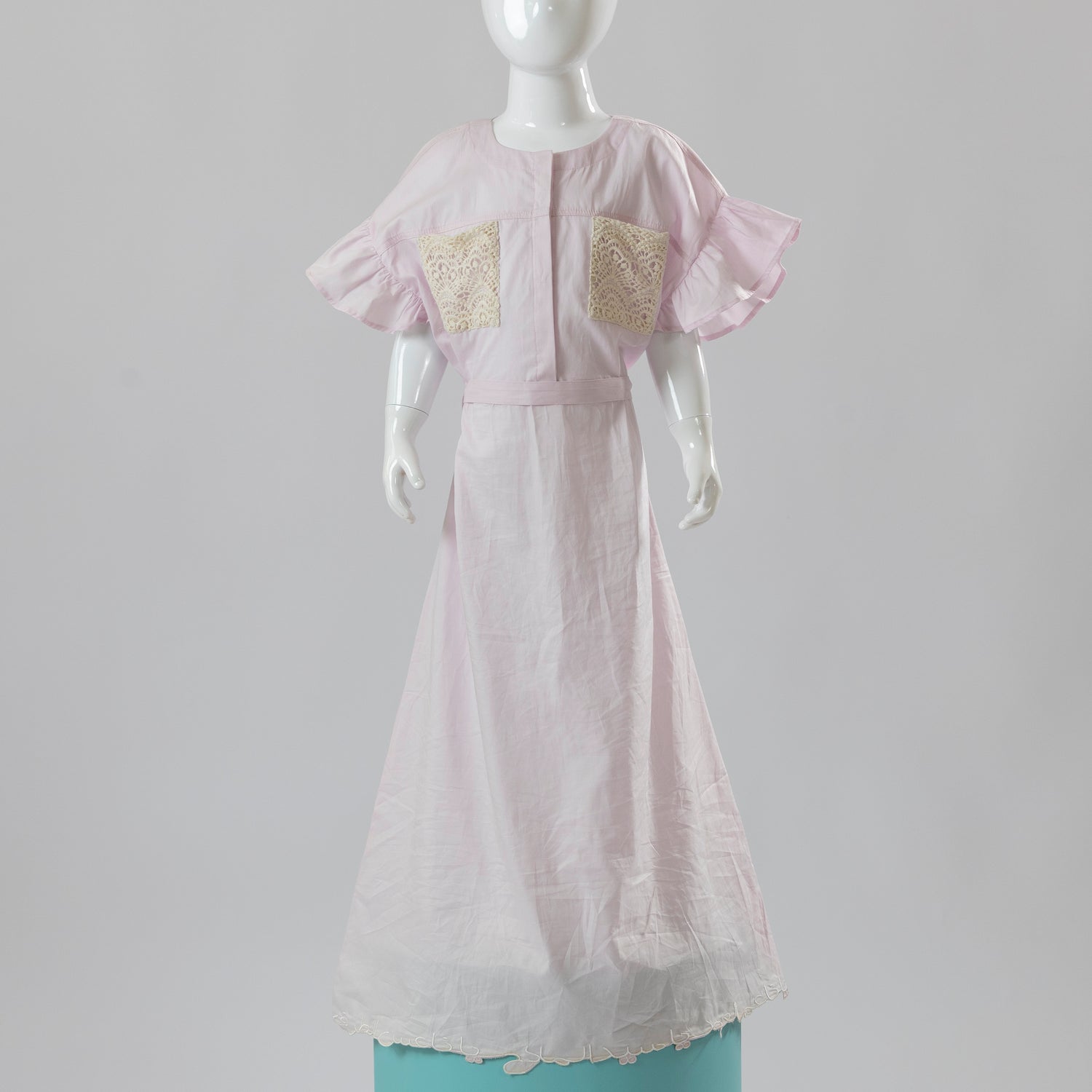 An adorable girly kaftan made from 100% cotton Oxford in the prettiest shade of pink, embellished with playful lace pockets and ruffled sleeves that flutter like butterfly wings. The Arabic embroidery, a timeless language of love, is woven into the hem, reminding her of her roots and potential. This modern take on a classic tradition is not only perfect for Ramadan, but also a delightful choice for Eid celebrations and all special occasions.