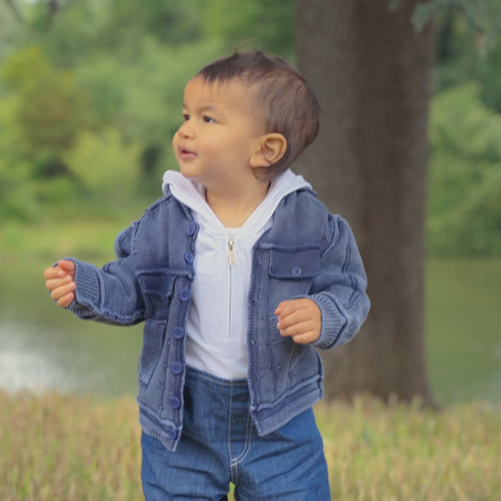 Season’s Warmest Secret! This boys Retro Jacket, made of breathable cotton, offers lightweight warmth and comfort. It’s smartly designed to feature the timeless look of buttons and pockets. It’s the ideal choice for modern parents who value both practicality and convenience. This Stylish Kids Cardigan can be paired with the Colored Life Baby Boy Denim Overall for a perfectly coordinated outfit. Available in various sizes.